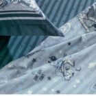 O edredom Espacial oferece aconchego e personalidade para noites cheias de imaginação. Dupla face, apresenta de um lado o astronauta músico em sua performance estelar; do outro, uma estampa listrada com estrelas que complementa com estilo. Com tecnologia termobond, o enchimento se mantém uniforme, para uma sensação sempre agradável. As costuras em matelassê garantem durabilidade e acabamento impecável. Uma peça versátil e divertida para aquecer os pequenos exploradores.