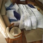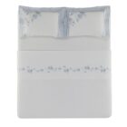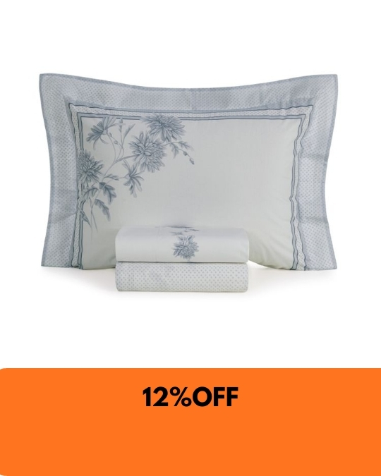 Com estampa floral feita à mão e dimensionada com micropoá, o jogo de cama Mavie se destaca pelos tons de azul sobre fundo branco, que criam sensação plena de leveza e frescor. A vira do sobre lençol também recebe a estampa em todo o comprimento, enriquecendo o conjunto. O lençol de elástico também conta com estampa de micro flores, que também estão presentes nas fronhas. Feito em algodão 200 fios de algodão penteados, é ideal para quem deseja uma cama delicada e repleta de detalhes artísticos.