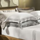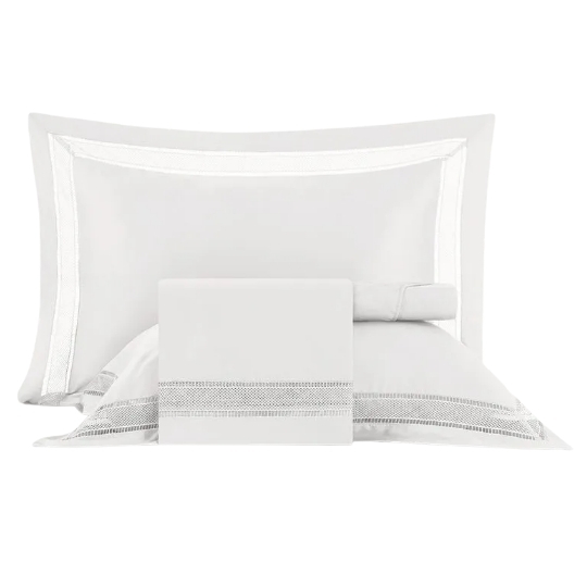 Confeccionado em tecido de bambu, uma fibra sustentável e altamente respirável, esse jogo de cama oferece um toque suave e acetinado com seu cetim 300 fios e detalhes bordados sofisticados. O bambu proporciona frescor natural, evaporando a umidade três vezes mais rápido que o algodão e reduzindo cerca de 70% das bactérias no tecido, garantindo noites mais arejadas e confortáveis. O jogo é composto por duas fronhas com aplicação de rendas nas quatro abas de 9 cm, um lençol de cima com detalhe de dobra feita e aplicação de bordados em U, e um lençol com elástico para um ajuste perfeito ao colchão. Disponível em bege, cinza e branco, este jogo acrescenta sofisticação, aconchego e elegância à decoração do seu quarto.