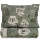 O jogo de colcha Futebol oferece conforto e estilo com temática esportiva. A frente apresenta uma composição rica em detalhes, com cenas de jogo, personagens e bola em movimento. O verso traz uma estampa suave em tom bege, proporcionando versatilidade para variar o visual da cama. O porta-travesseiro acompanha com estampa coordenada e acabamento cuidadoso. Com enchimento leve e textura agradável, é ideal para transformar o quarto em um espaço lúdico e cheio de personalidade.