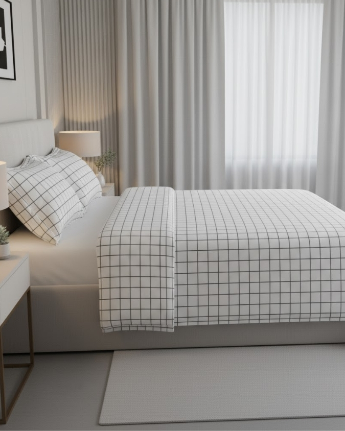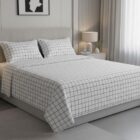 Confeccionado em 150 fios, 100% algodão, o Kit Colcha Elise possui acabamento matelado e enchimento leve, garantindo um toque macio, caimento impecável e um visual elegante. Seu design liso proporciona um estilo clean, atemporal e versátil. Uma escolha certeira para quem valoriza suavidade, praticidade e sofisticação.