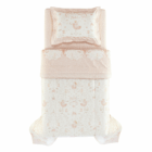 O jogo de colcha Encantada oferece um visual poético e lúdico para o ambiente infantil. A frente da colcha traz bailarinas e cisnes em uma composição delicada, enquanto o verso exibe um padrão de estrelas suaves, ideal para variar a decoração. O porta-travesseiro acompanha a proposta e reforça a harmonia do conjunto. Com acabamento refinado e enchimento leve, é perfeito para transformar a cama em um cenário de sonho, mantendo o toque aconchegante e sofisticado da cama Encantada.
