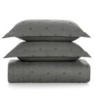 Com visual clean e sofisticado, o jogo de colcha Juno reforça a estética minimalista da linha com elegância sutil. Em tom de cinza mais escuro, que harmoniza com os bordados do jogo de cama, a colcha apresenta bordado discreto, que confere profundidade e requinte à composição. Os dois porta-travesseiros coordenados completam o conjunto com equilíbrio e leveza. Confeccionado em algodão 200 fios e acabamento termobond, oferece durabilidade, toque macio e um visual atemporal.